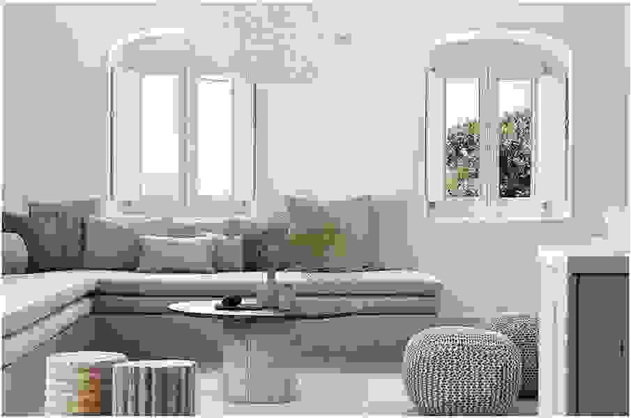 Дизайн в греческом стиле не приемлет обилия декора. Что касается оформления окон, то лучше выбрать аккуратные шторы, например, римские занавеси или жалюзи.