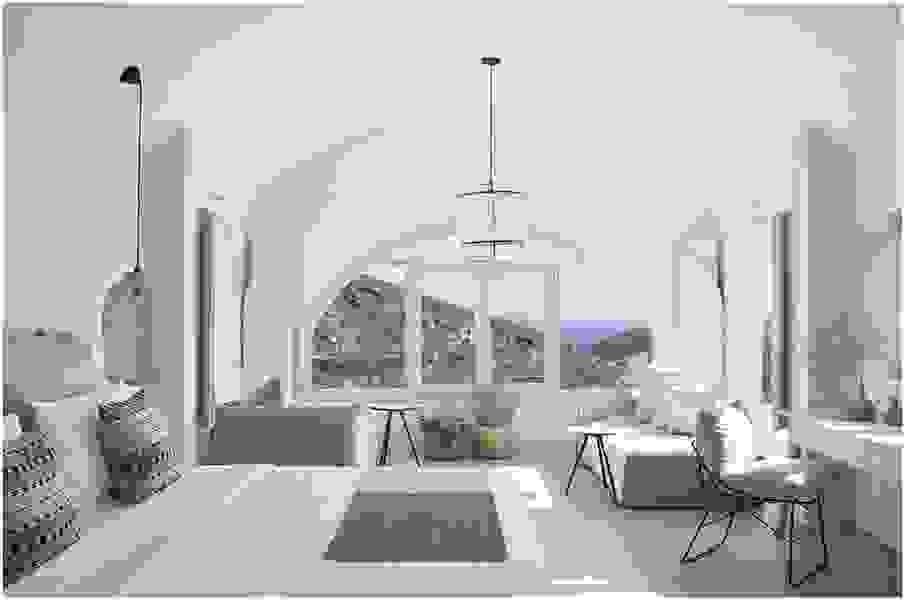Фактурная стена — отличный способ визуально зонировать греческий интерьер