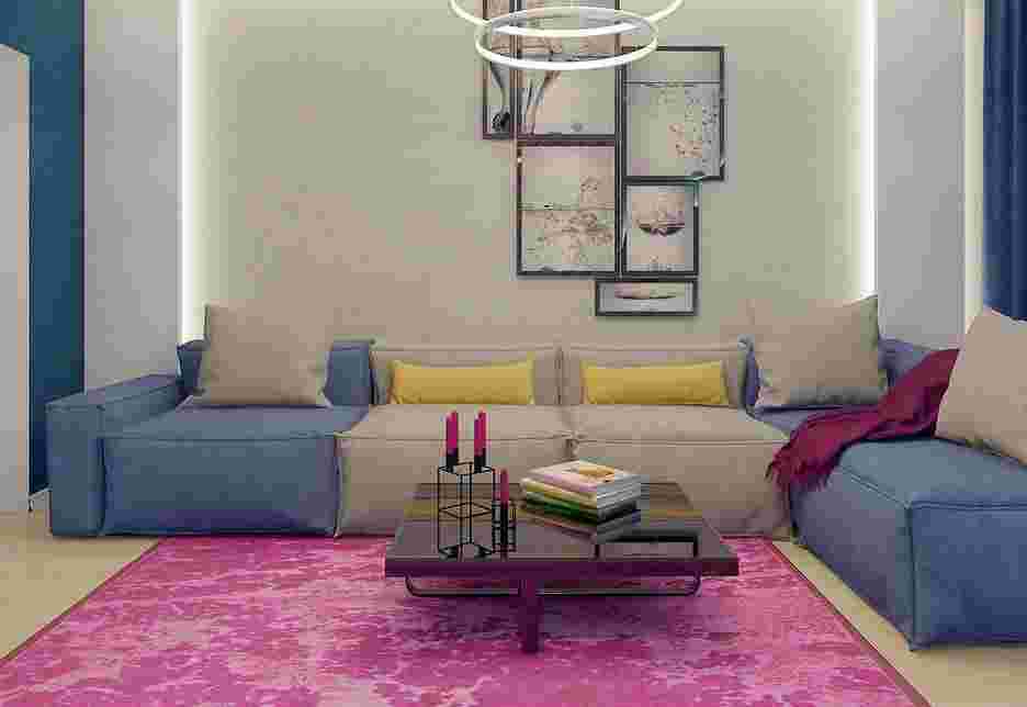 - мягкая мебель может быть в ярких цветах, которые должны явно отличаться от всего остального интерьера;