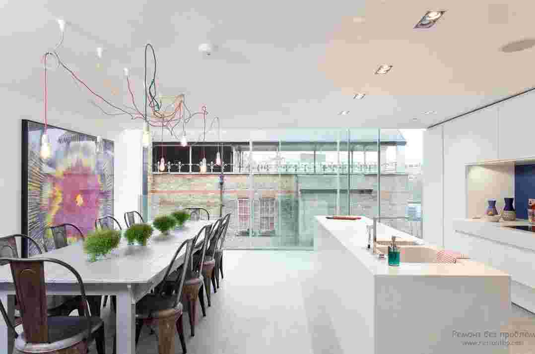- Зона на холодильнике – если вспомнить законы физики, то можно понять, что весь горячий воздух с кухни будет скапливаться под потолком. Это приведет к тому, что расставленные там цветы завянут за несколько дней.