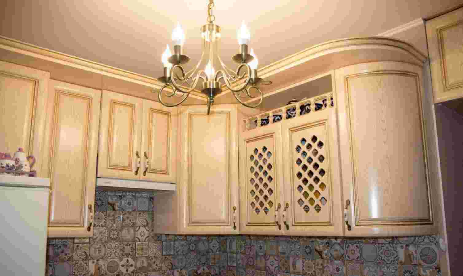 - Оттенок доминирующего цвета. Например, в светло-коричневой кухне может быть использована темно-коричневая люстра.