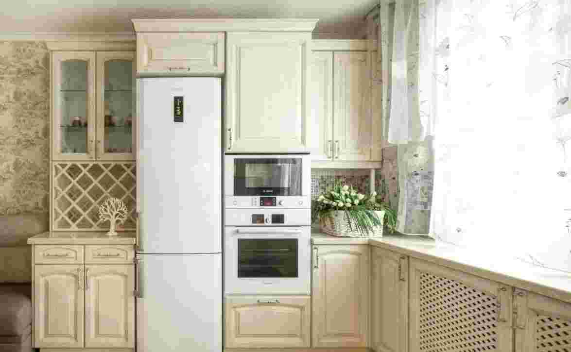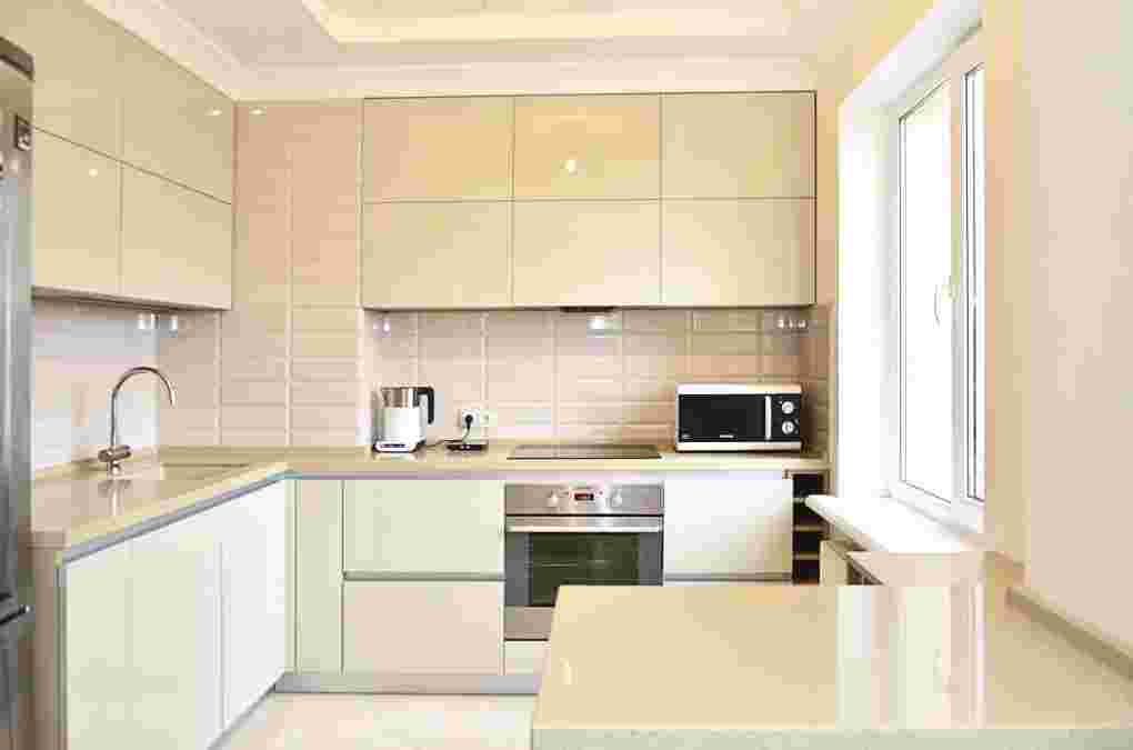 На фото бежевый цвет кухни как пример оттеночного сочетания цветов