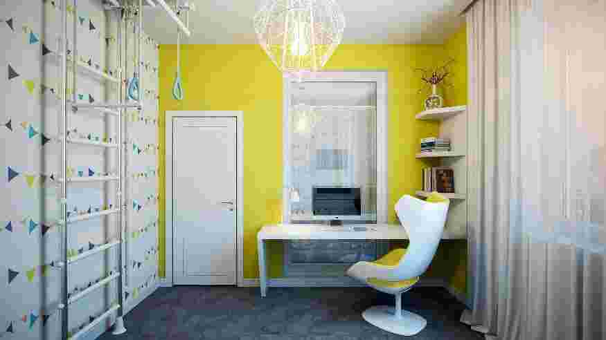 Стены оставляют светлыми, их можно покрыть обоями или краской.