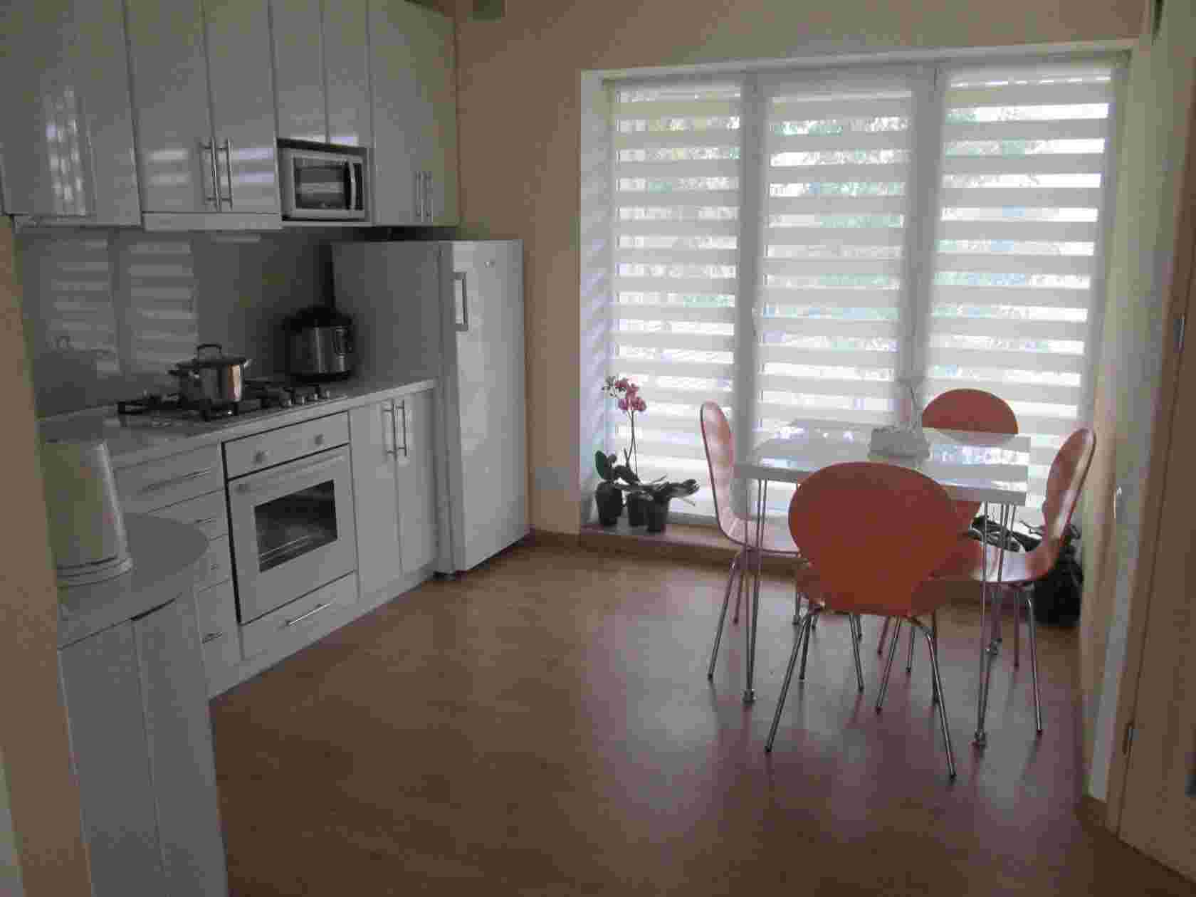 Темные шторы в светлой кухнеИсточник hzcdn.com