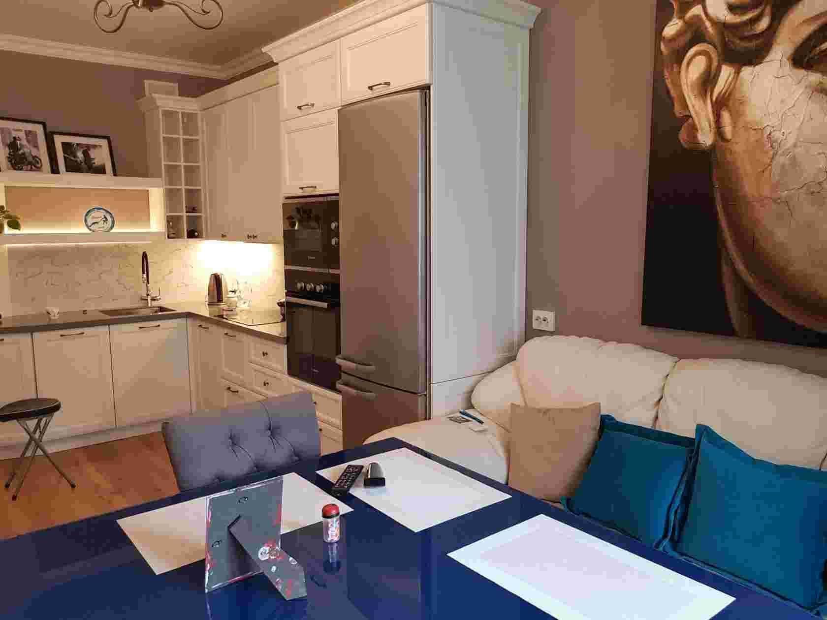 Является одним из основных мест сбора всех членов семьи. В просторном помещении размещают зону приготовления пищи и большой обеденный стол. Вся мебель расставлена так, чтобы на кухне можно было спокойно готовить, перемещаясь между техникой, и не мешать остальным членам семьи, стоящим за столом.
