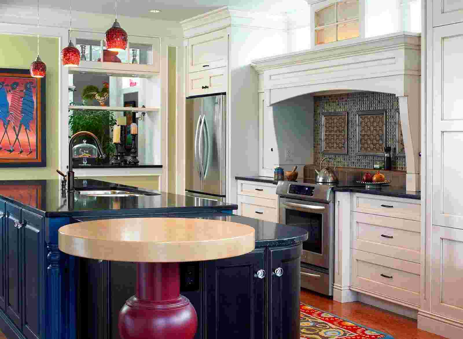 В идеале для создания интерьера кухни в стиле фьюжн стоит обратиться к опытному дизайнеру. Если же вы уверены в собственном вкусе и чувстве гармонии, начать стоит с незначительных экспериментов и перемен. Возьмите за основу какой-то яркий акцентный элемент (красный холодильник, пестрый фартук, часть стены, выкрашенной в ваш любимый цвет), и постепенно подбирайте к нему «соседей». Рассмотрим подробнее основные принципы и неписанные правила оформления интерьера кухни в стиле фьюжн.