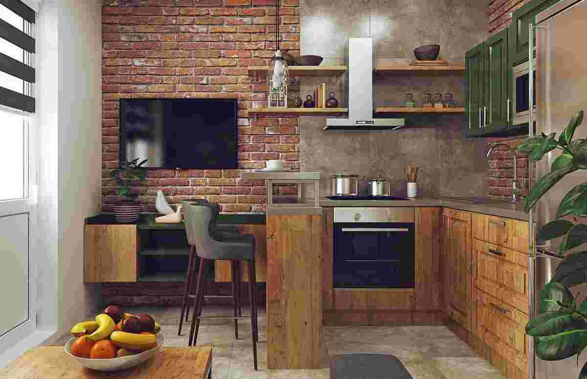 Стиль похож на лофт или кантри. Предпочтение отдается натуральным материалам, стены часто отделывают кирпичом, деревом или камнем. Кухня должна быть просторной.