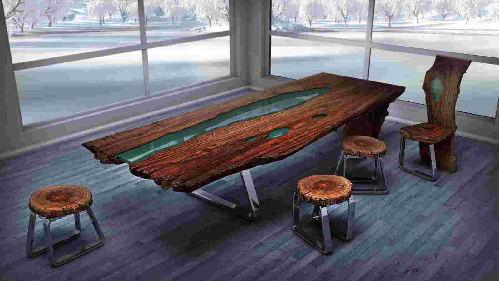 Натуральность – природные материалы, специально обработанные небрежно и грубо, делают стол особенно оригинальным и эффектным.