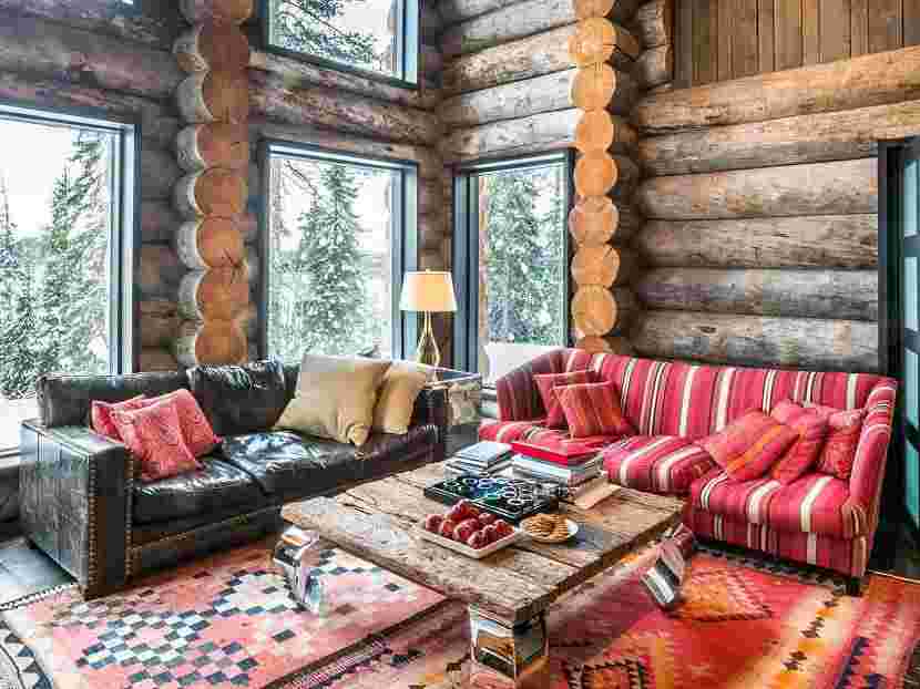 Уютная комбинация стилей шале и кантри в оформлении гостинойИсточник paydaydcr.com