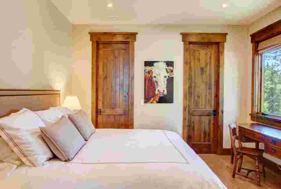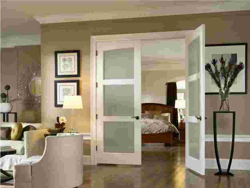 В спальне стоит отказаться от дверей ярких расцветок, остановив свой выбор на нейтральных и приглушенных тонах. Двери лучше выбирать глухие, которые не позволят нежелательным звукам и раздражающим источникам света проникнуть в вашу опочивальню.
