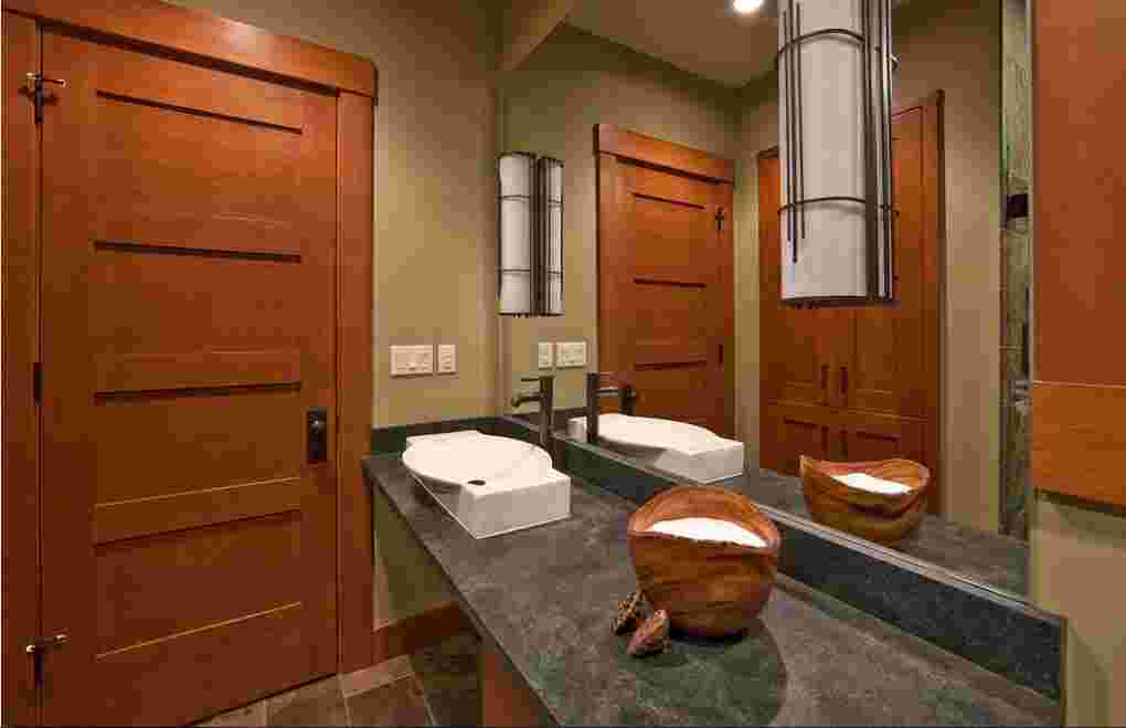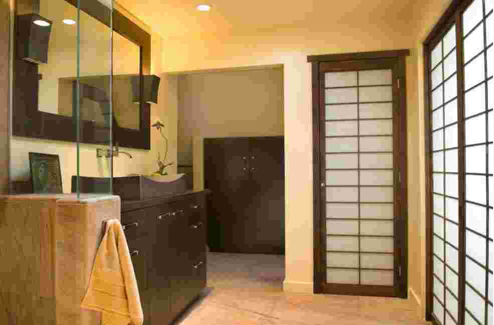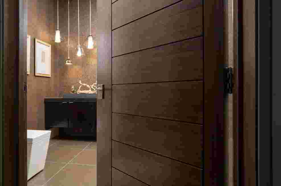 Выбирая дверь для кухни, ванной комнаты и санузла, обращайте внимание прежде всего на степень влагостойкости материала. Нестандартные варианты, полностью выполненные из стекла, или жалюзийные двери позволяют свету проникать вглубь помещений