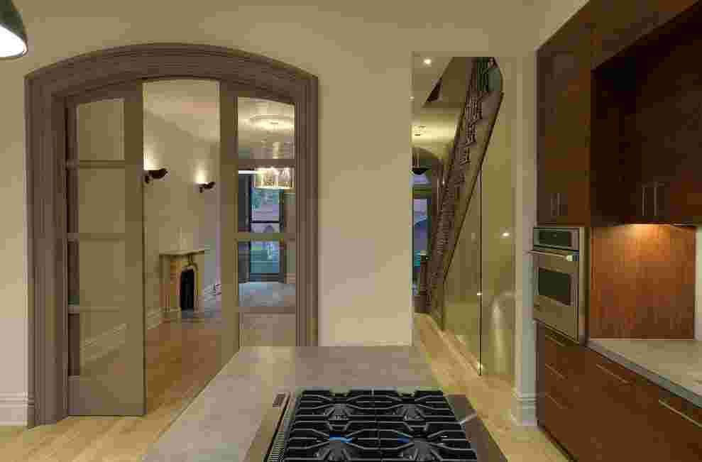 Нестандартные варианты, полностью выполненные из стекла, или жалюзийные двери позволяют свету проникать вглубь помещений. Такой вариант будет уместен в кухне и гостиной. Насчет кухонных запахов можно не беспокоиться — современные вытяжки не оставляют им никаких шансов.