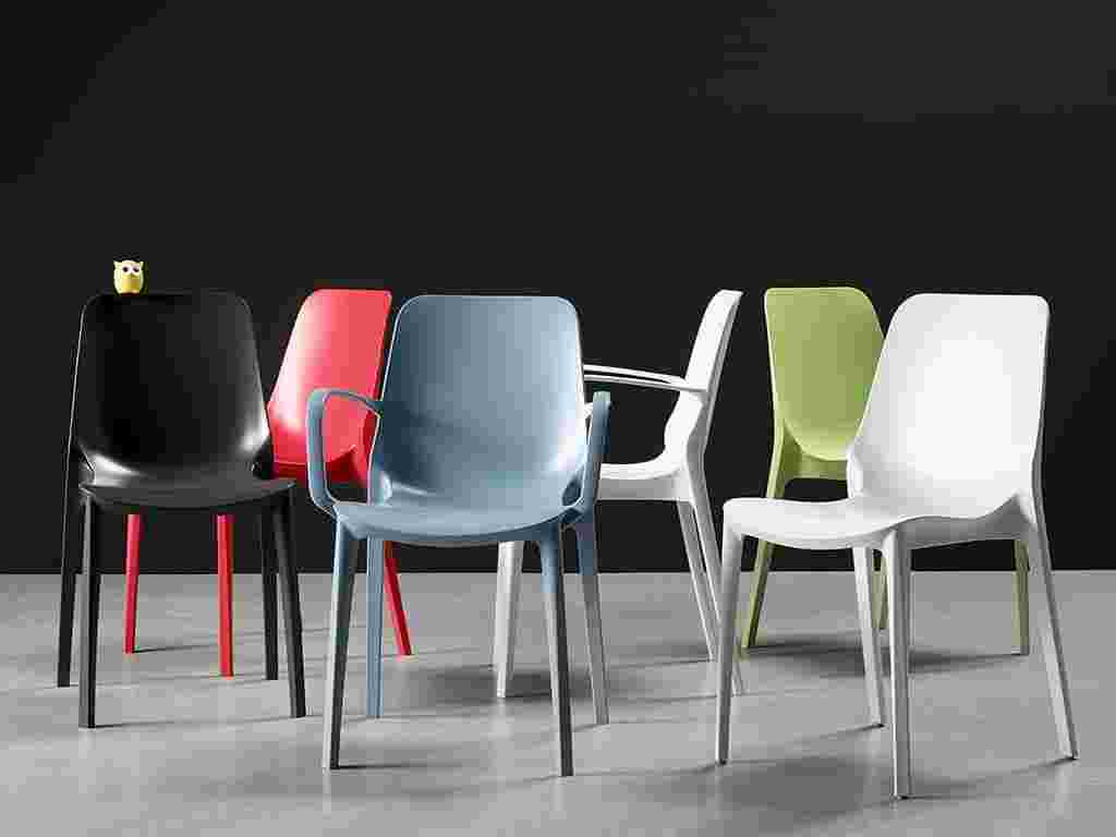 Пластиковые. Незамысловатые и доступные варианты. Делаются из прочного пластика, устойчивого к ультрафиолетному действию. Могут быть складными. Отлично выглядят, но могут использоваться не на всех ландшафтах. Обычные в работе и долговечные. Во многих случаях каркас плавно перетекает в спинку, в этом случае стул получается цельным. Лучше не хранить на морозе. Заносите их в тепло.