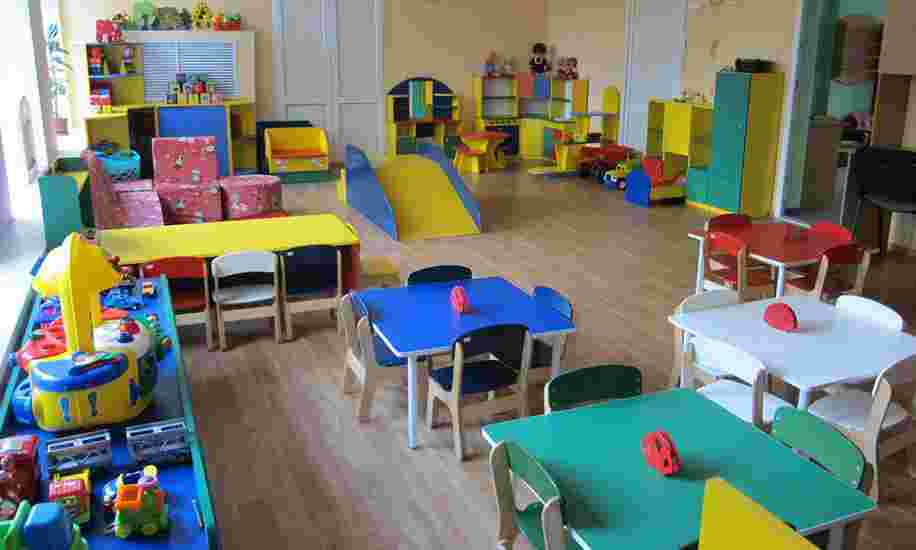 Здесь располагаются игровые принадлежности, мягкая мебель, стеллажи, шкафы для книг и дидактических материалов, столы и стулья для развивающих занятий и приема пищи. Расстановка мебели в детском саду выполняется с учетом активных игр. Все предметы обстановки и оборудование должны выдерживать вес детей и быть безопасными.