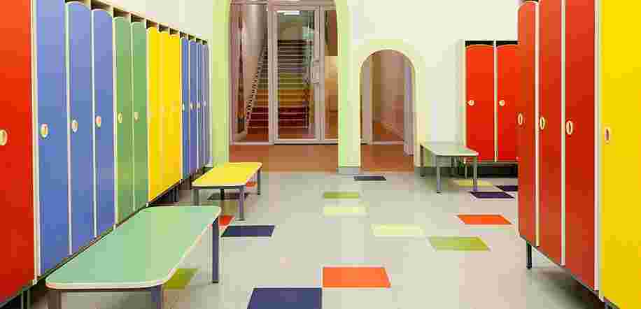 Индивидуальные шкафчики для хранения обуви, верхней и сменной групповой одежды соответствуют росту детей. Ребенок должен без труда доставать до хорошо закрепленных полок и крючков. Для переобувания используются устойчивые широкие скамейки или банкетки.