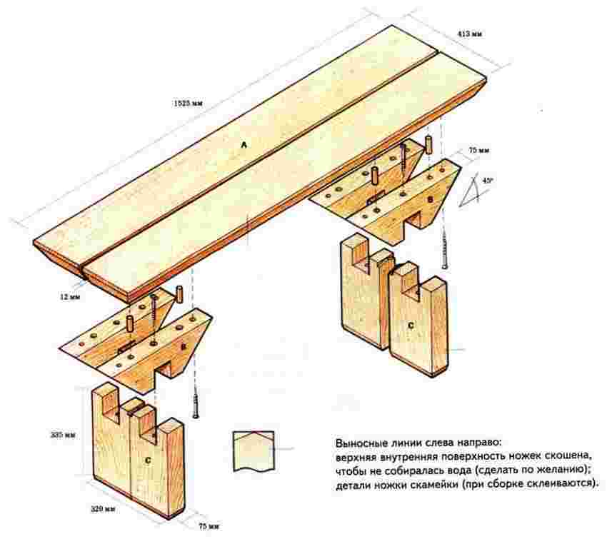 Наиболее распространенными предметами обихода, сделанными из дерева, являются столы, стулья, скамейки и др. Вы можете комбинировать используемые материалы. Например, каркас скамейки легко делается из стальных уголков, а зятем все это обивается деревянными панелями.