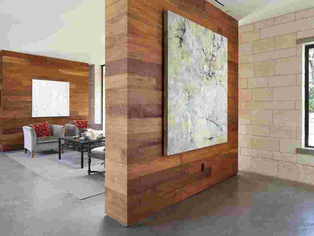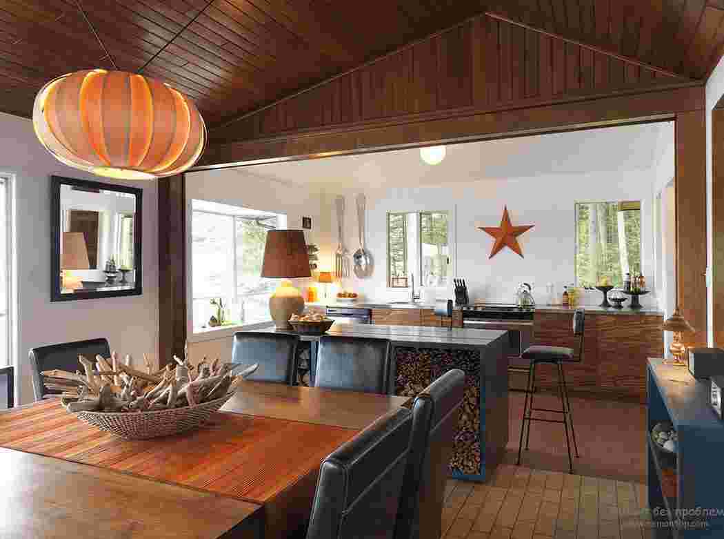 Сочетание с разными материалами в интерьере: стекло, камень, пластик, дает разный конечный результат, но неизменно то, что дерево является универсальной и популярной отделкой.