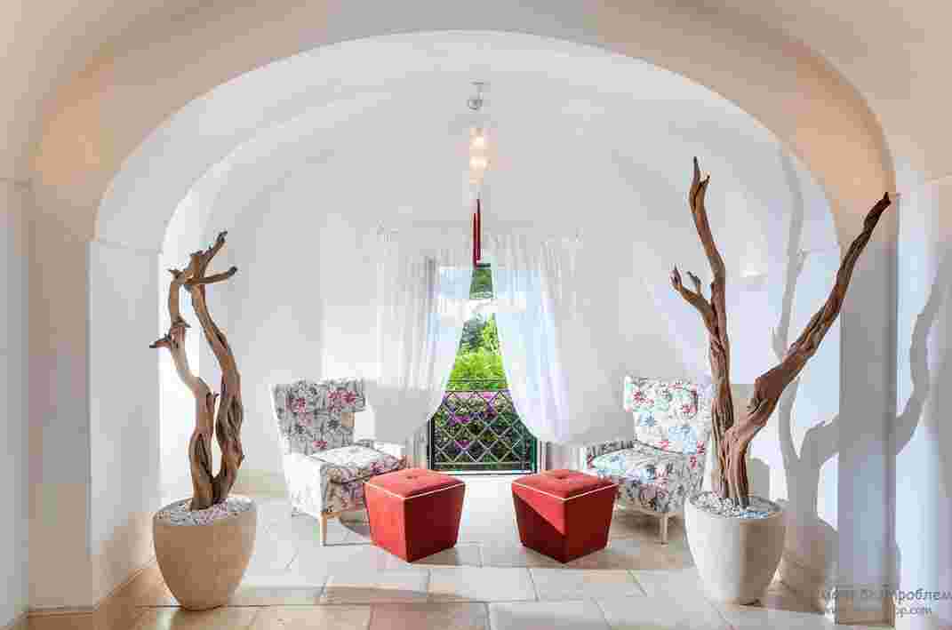 Наиболее смелым клиентам современные дизайнеры предлагают по-настоящему фантазийные решения. К примеру, настоящее дерево в кадке. Стандартные квартиры для этого не подойдут, однако загородный дом, отличающийся большой площадью, — как раз то, что нужно. К примеру, в Европе настоящим модным трендом последних лет является живая ель в горшке.