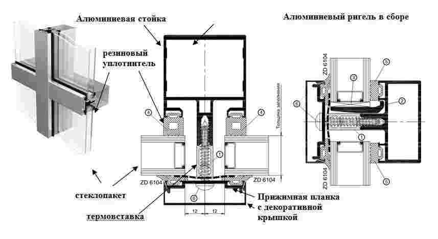Стоечно-ригельный фасад, схема