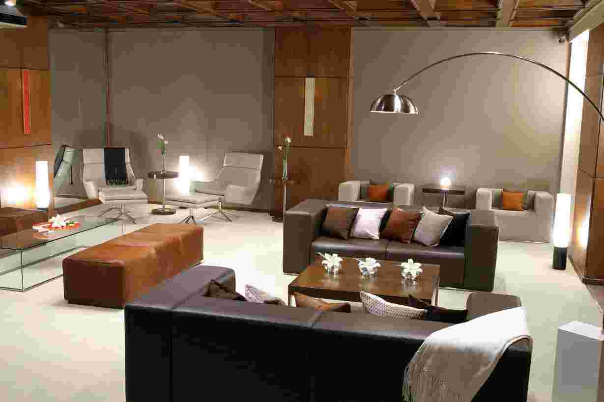 Дизайн мебели в зоне отдыха, а также материалы полностью зависят от общего стиля заведения. Зона отдыха может быть представлена только диванами либо их комбинацией со столами и стульями. По форме столы делают не только стандартно прямоугольными или овальными, но зачастую они имеют оригинальную форму. Изготавливают комбинированные варианты — вставки со стеклом, кожей, либо встроенными подсветками.