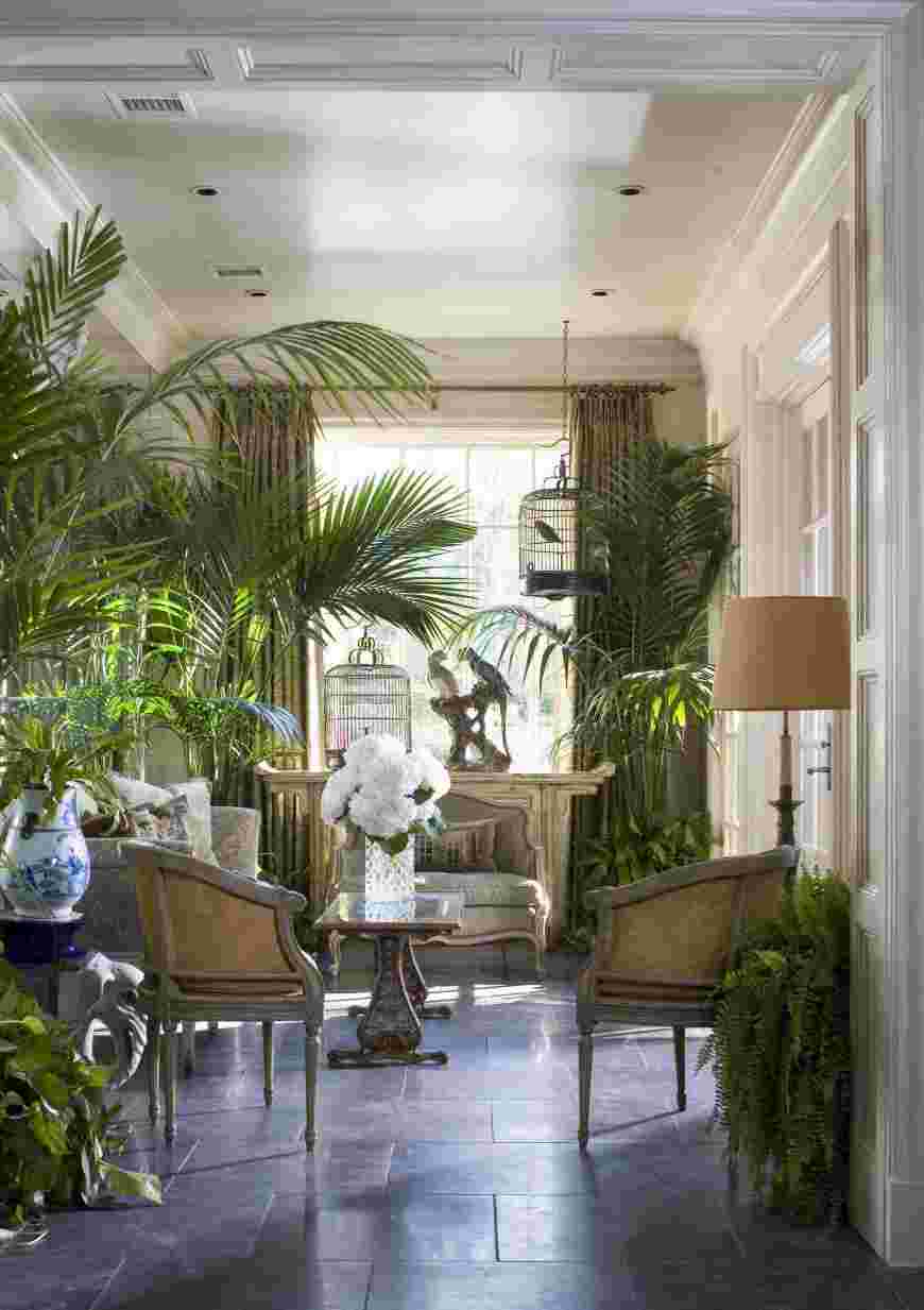 В интерьере колониального стиля никак не обойтись без «живого» уголка. Множество экзотических