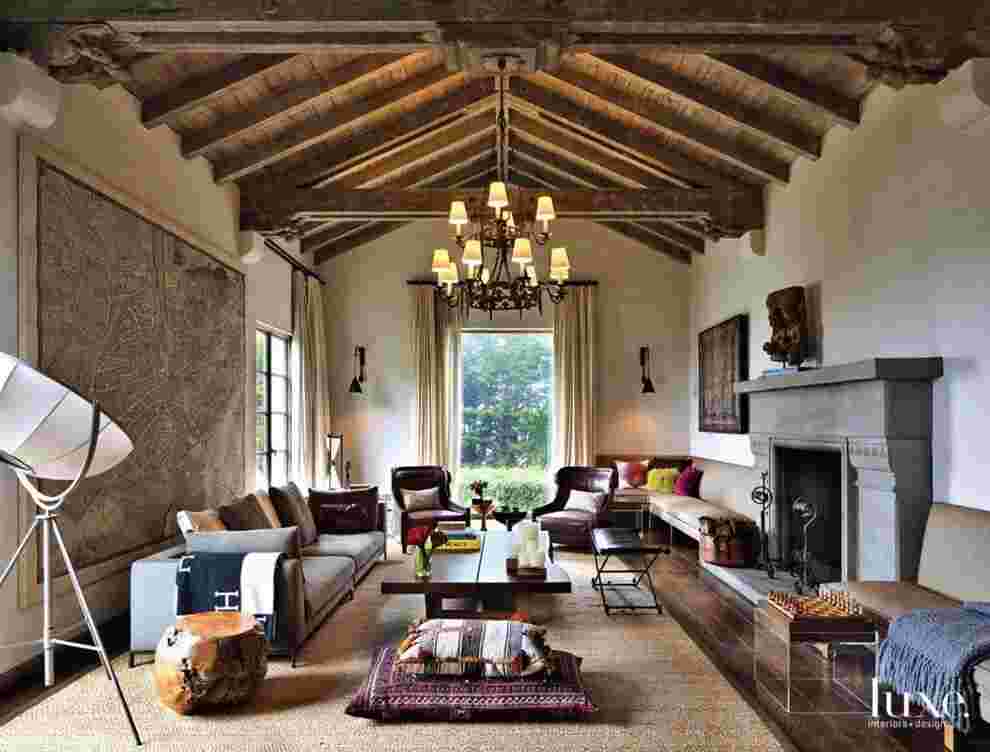 Полоток почти всегда окрашивается и оформляется при помощи натурального или лакированного дерева. Балки можно окрасить в кремовые тона. Пол обставляется керамикой или деревом, часто присутствуют ковры или тканевые дорожки. Дверей в комнатах практически нет – межкомнатное пространство разделяется плотными шторами. Присутствующие двери и окна оформляются в виде арок. Например, дух переселенцев из Франции передаётся через светлые шторы, а колорит Африки подчёркивается натуральными материалами.