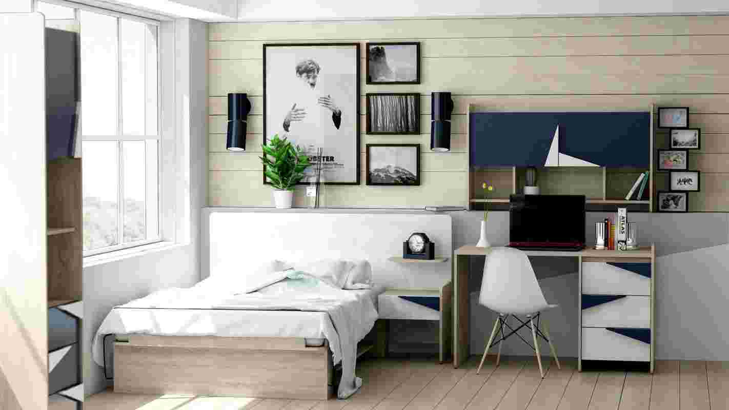 - В комнате до 10 кв. м придется разместить только необходимую мебель: шкаф, рабочий стол и кровать. В данном случае подойдут модели белого цвета, желательно, модульные.