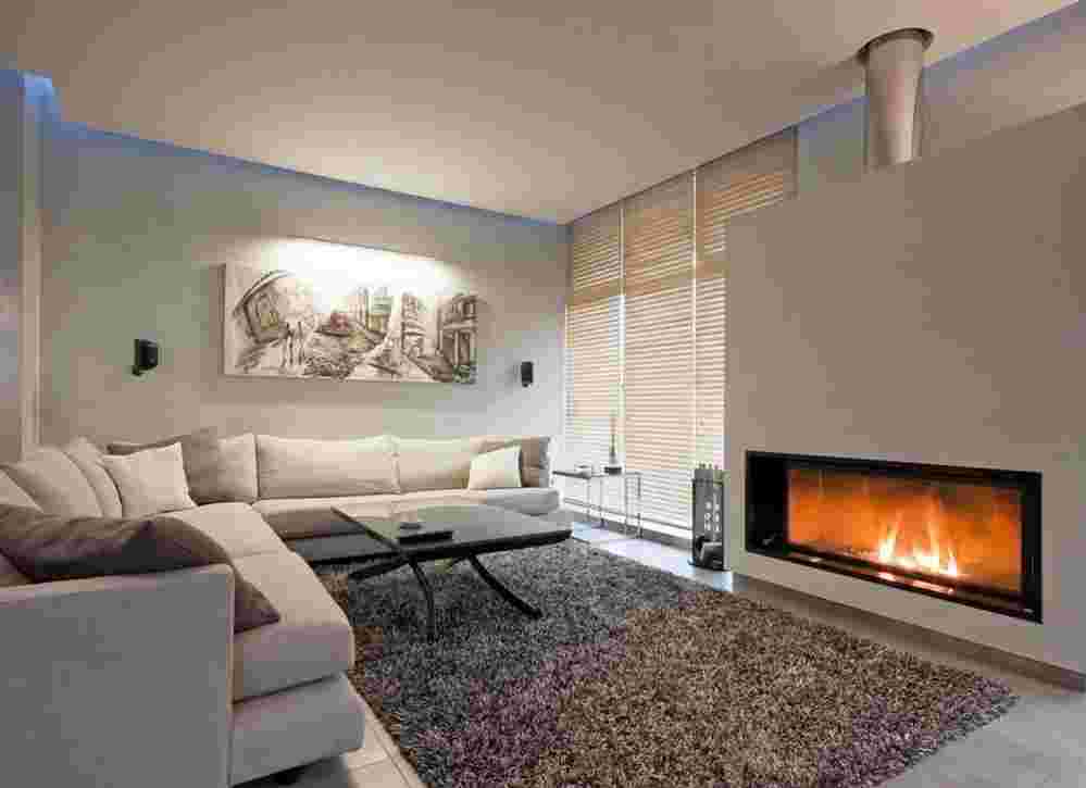 Необычно украсить лаконичный дизайн комнаты минимализм можно с помощью панорамного или подвесного камина. Данная конструкция позволяет видеть пламя с разных сторон. Кроме того, камин гармонично впишется в гостиную в стиле минимализм.