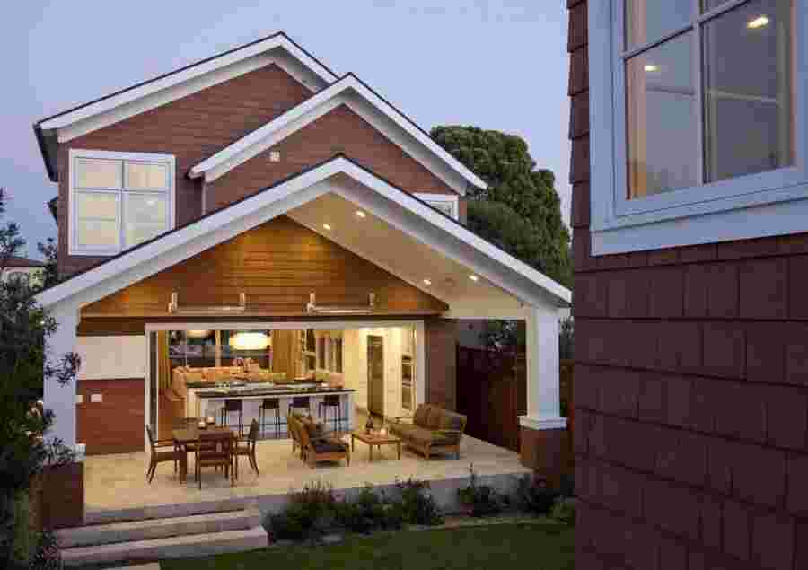 Для создания выразительных акцентов на углах дома используют сырье в контрастных цветах. Эффектно смотрится бежевый экстерьер с коричневыми или черными деталями. Если коттедж выполнен в темных оттенках, то в качестве ярких элементов применяют белую(серую) палитру.
