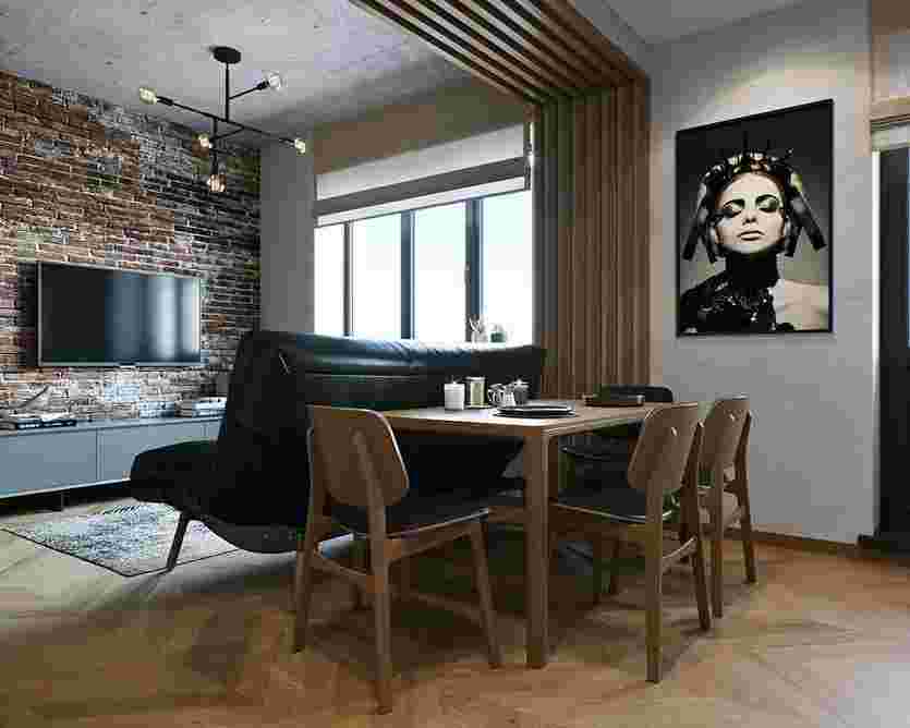 Для создания интерьера в индустриальном стиле отлично подходит большая по площади комната с незначительным количеством перегородок, широкими окнами и бетонными или кирпичными стенами. Пространство организовано с помощью сочетания состаренных текстур и поверхностей с современными. Объединив эти два характерных для лофта элемента, можно воспроизвести стильный образ даже в небольшой квартире.