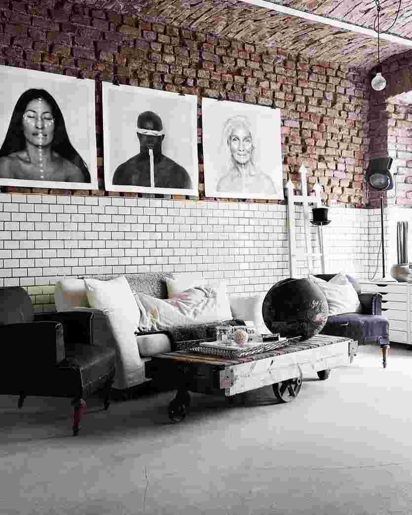 Начну с отделки стен, чаще всего предпочтение отдается кирпичной кладке, которая может быть выбеленной, демонстративно необработанной, частично оштукатуренной, окрашенной краской или покрытой лаком.