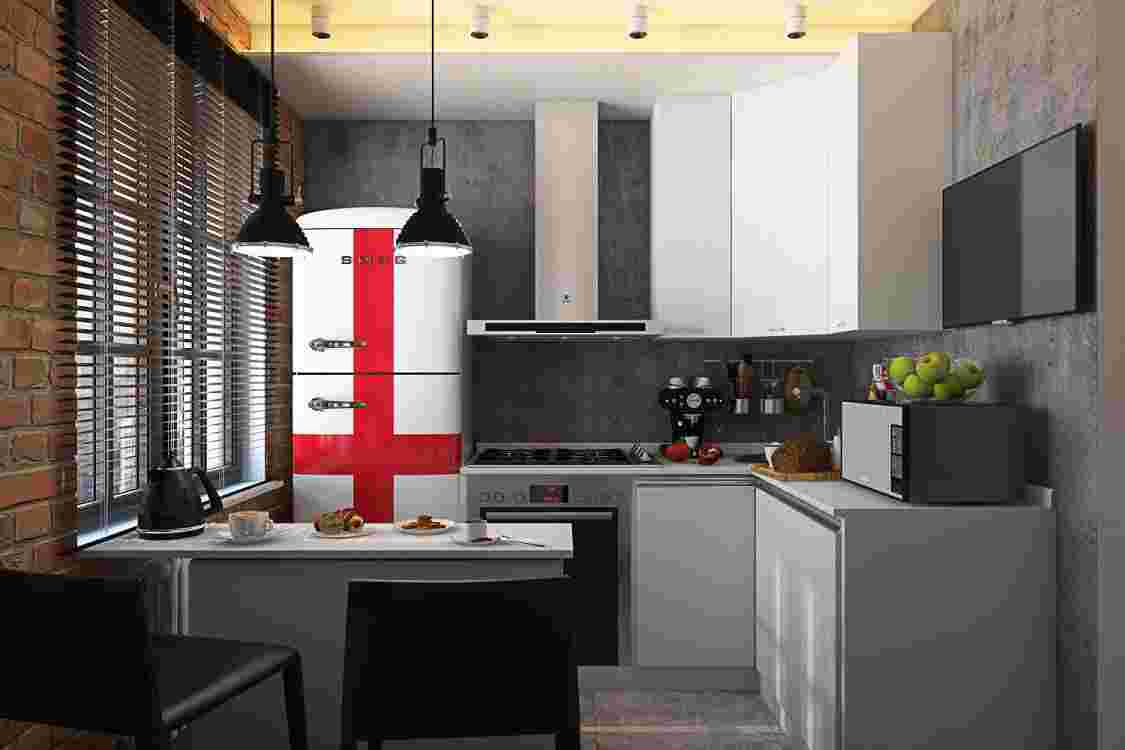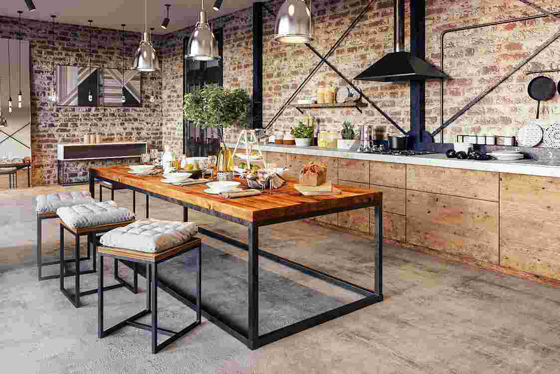 Отделка кухни в стиле лофт подходит для больших и маленьких кухонь.