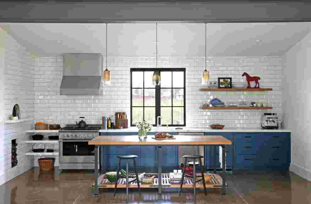 На большой кухне вы можете проявить всю свою смелость и отдать власть красному кирпичу или темному камню.