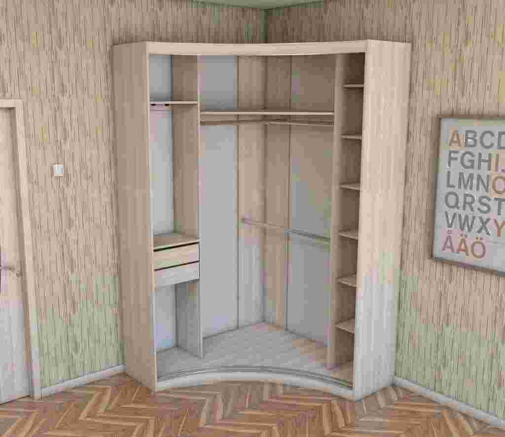 угол — пустующих углов хватает в каждой комнате. Грамотно «вписать» в них стационарную мебель проблематично, поэтому на выручку приходит угловой встраиваемый шкаф треугольной формы. Он отличается от обычных экземпляров, полностью заполняет угол, может завуалировать неприглядные элементы. Глубина моделей треугольного вида ограничена по вместительности из-за задних стенок;