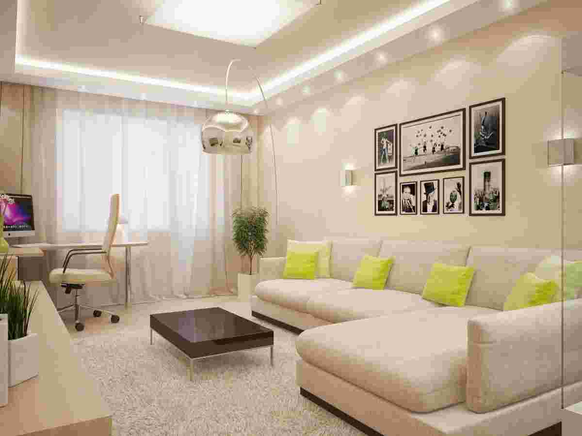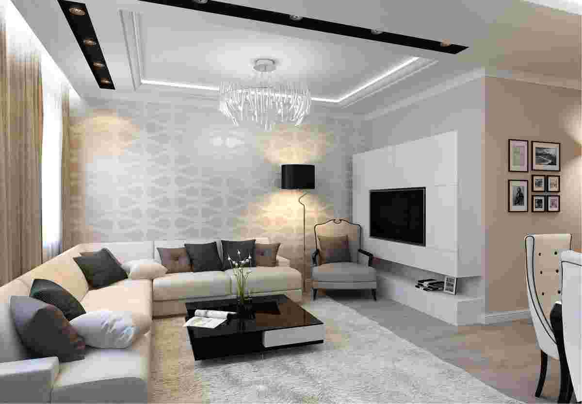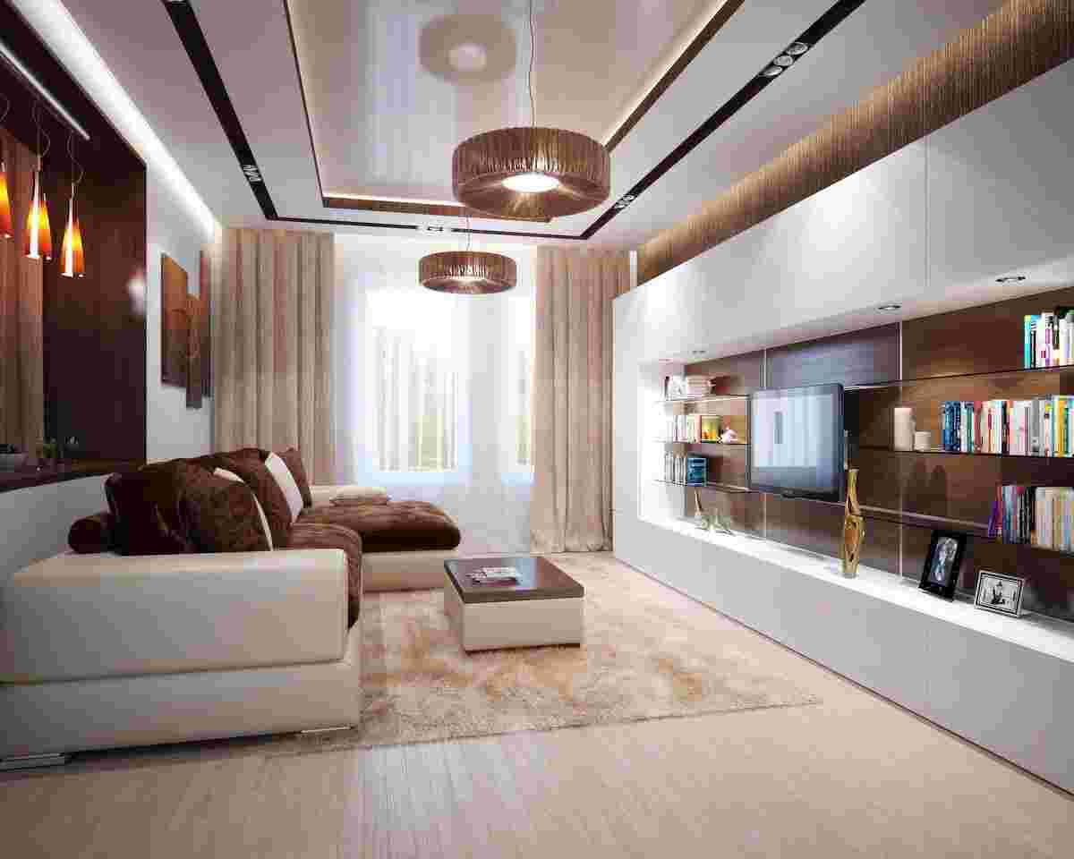 Белый также заслуживает особого внимания, так как он будет не только соответствовать всем акцентам, представленным в зале, но и создаст в комнате ощущение чистоты, свежести и простора. Следует помнить, что потолок должен быть ярче, чем стены. Это решение позволит избежать эффекта подавления и опускания помещения.
