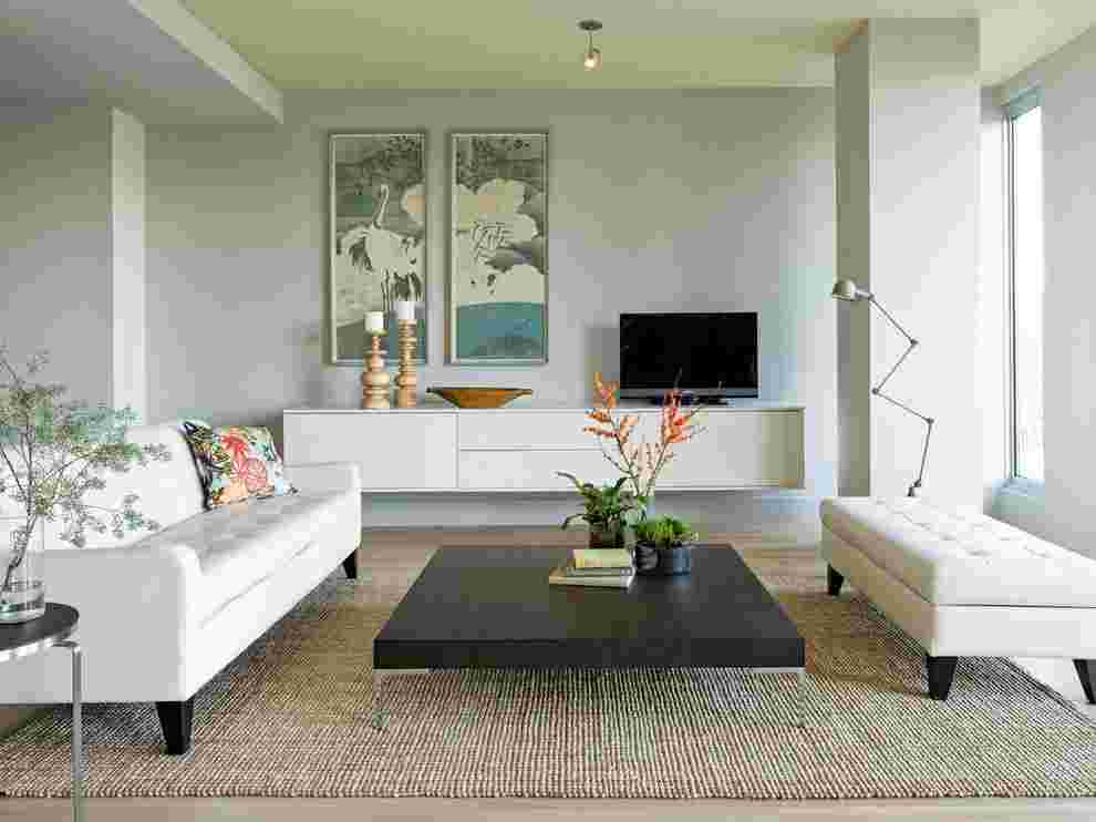 В случае минималистской гостиной нельзя переусердствовать с украшениями. Лучше всего, когда сама мебель станет величайшим декором комнаты. Современный интерьер в первую очередь просторен, поэтому чем меньше вы сможете перегружать цветами, богатым дизайном и дополнениями, тем лучше. Конечно, в то же время следует избегать однообразия, поэтому вы можете смело ставить на доминирующий акцент в виде прозрачной вазы или рамки для фотографий. Интерьер также оживят красочные подушки или интересное покрывало.