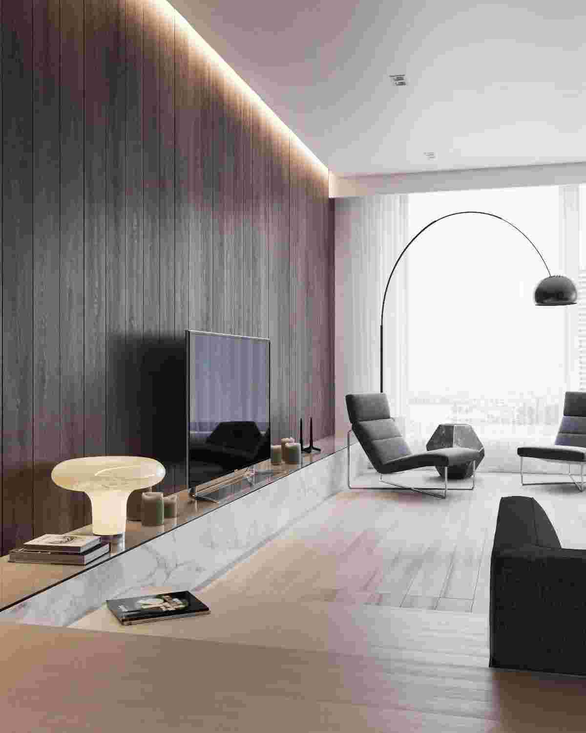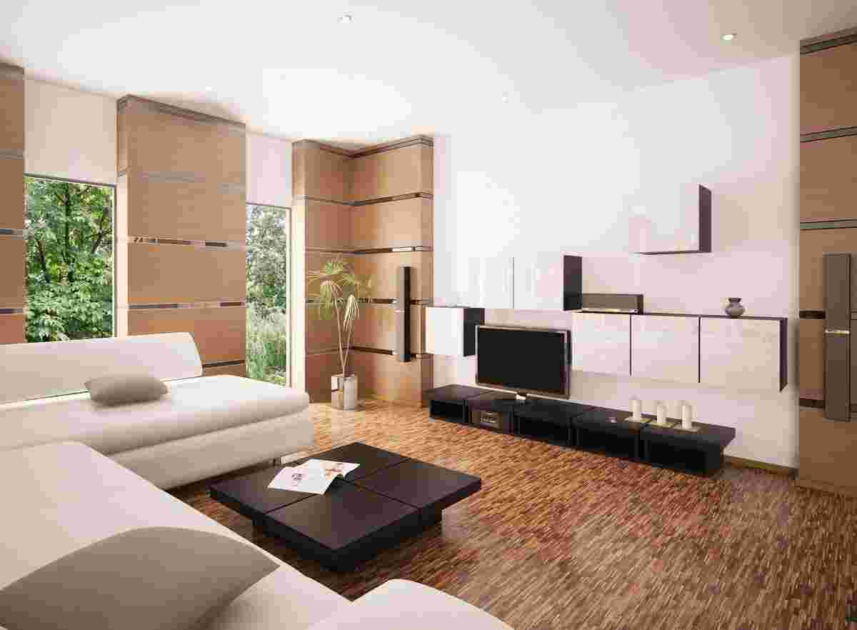 Хорошо, если в основе обустройства гостиной в минималистском стиле лежит, среди прочего использование дерева. Этот материал является элегантным элементом отделки (полы, столешницы), но если вы выбираете шкафы или полки из него, то следует сосредоточиться на простых формах, без украшений. Также нужно знать, что мебель с геометрическими формами создаст ощущение простора в гостиной. Кроме того, в современном дизайне можно наблюдать четкую тенденцию замены кресел и зон отдыха пуфами, а также низкими угловыми диванами с маленькой спинкой.