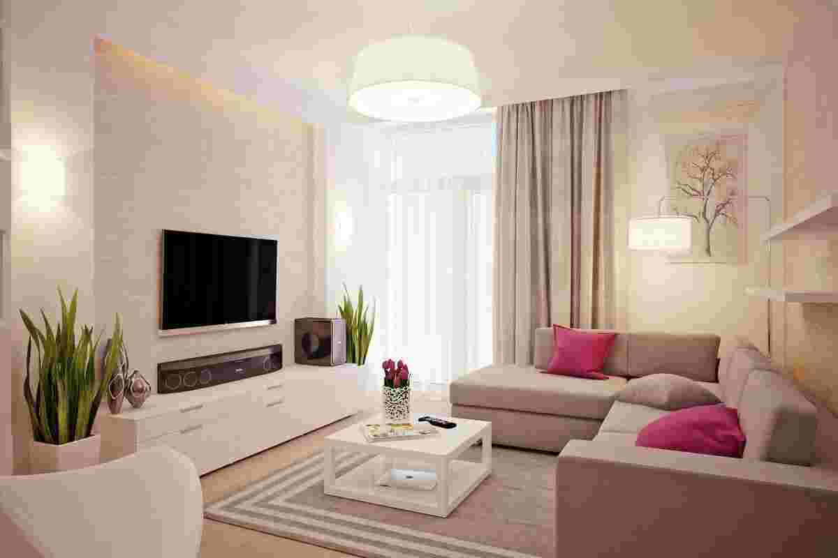 Интерьер гостиной в светлых тонах цветовой палитры дает массу возможностей для дизайна.