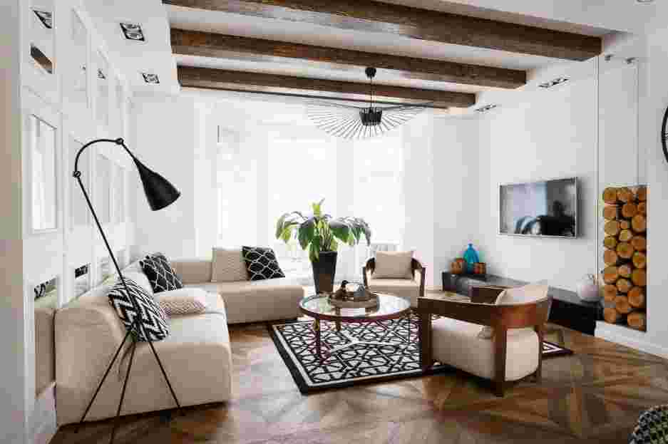 Сельские мотивы, которые характерны стилю кантри, все чаще используют в современных интерьерах. Потолочные деревянные балки, а также мебель с натуральным рисунком и минимальной обработкой – то, чего так не хватало современным гостиным комнатам. Интересно, что такие детали сейчас используют не только в больших домах, но и в простых квартирах, адаптируя под себя.