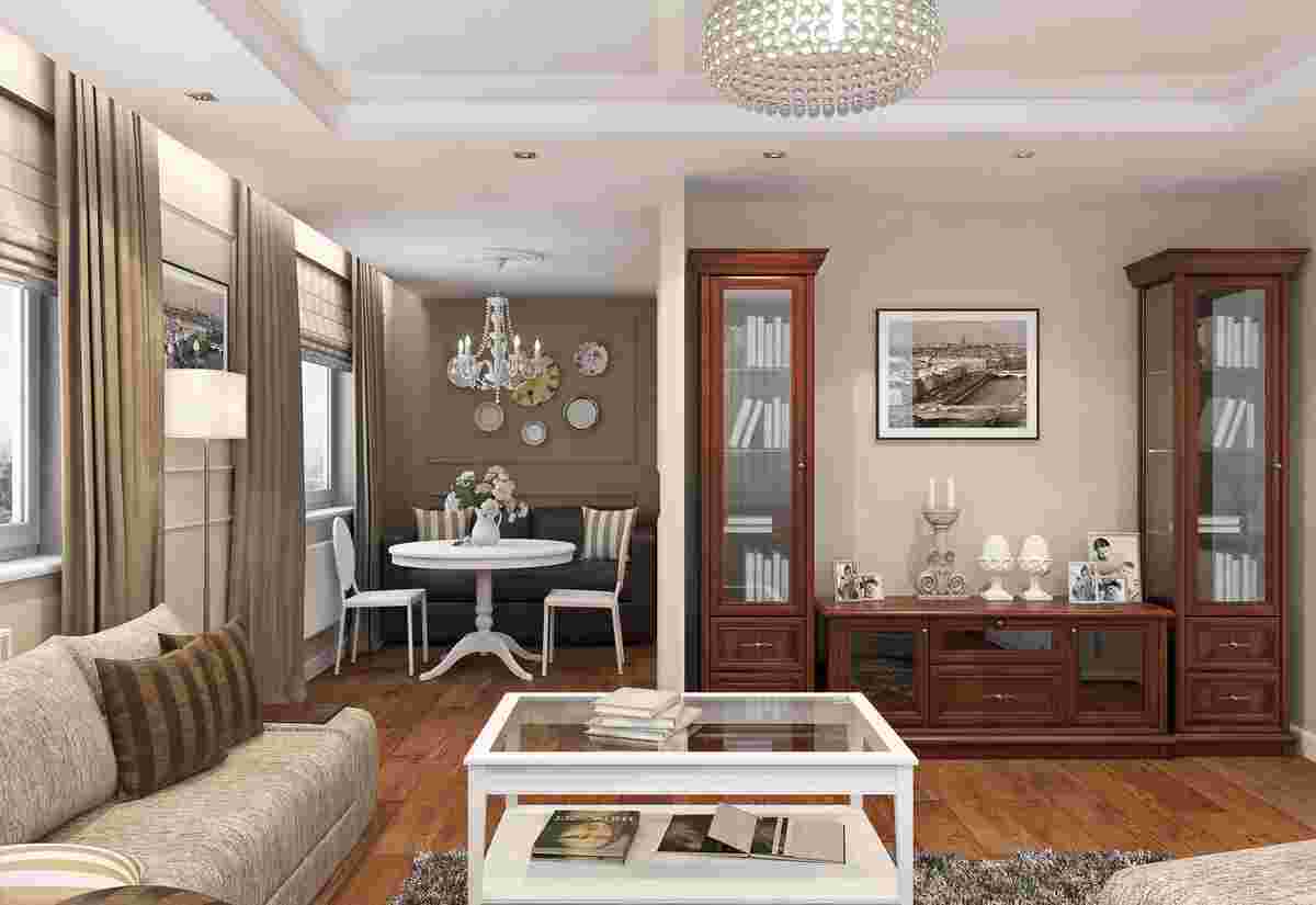 Оборудуя классическую гостиную, рекомендуется выбирать натуральные материалы, качественную обивку и роскошный декор. Классика же в целом — это для просторных помещений. В маленьких будет создаваться ощущение перегруженности.