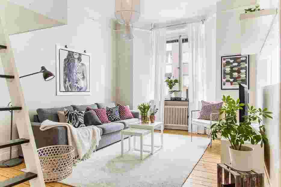 Скандинавский стиль гостиной приемлет строгость формы и нейтральность цвета, однако в то же время такие интерьеры выглядят уютно и комфортно. На первом плане всегда мебель, декор играет второстепенную роль.