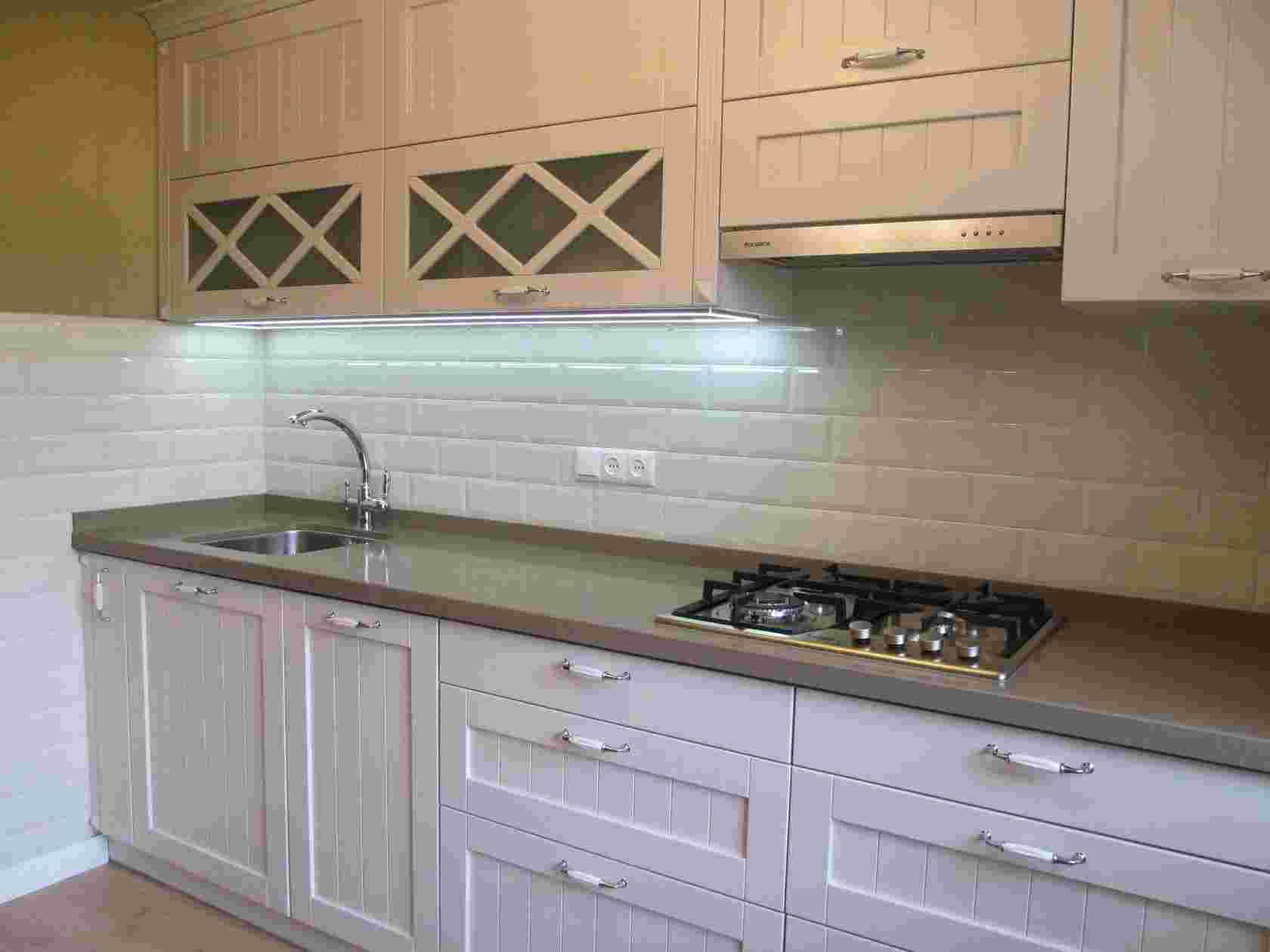 Рабочая поверхность должна быть хорошо освещена, поэтому над гарнитуром устанавливают более мощные светильники, либо увеличивают количество устройств.