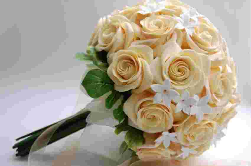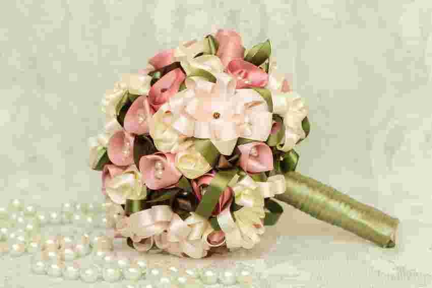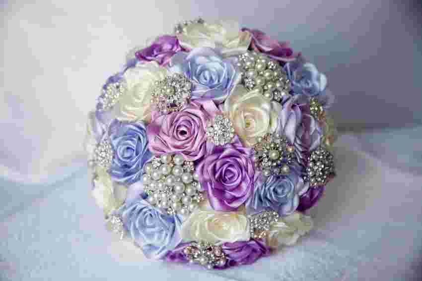 Тканевый букет – отлично подходит для свадеб, когда необходимо выполнить букет-дублёр. Фото букета, изготовленного своими руками, можно найти в интернете, он может быть выполнен из бархата, шёлка или фатина, или быть более оригинальным, будучи сделанным из джинса.