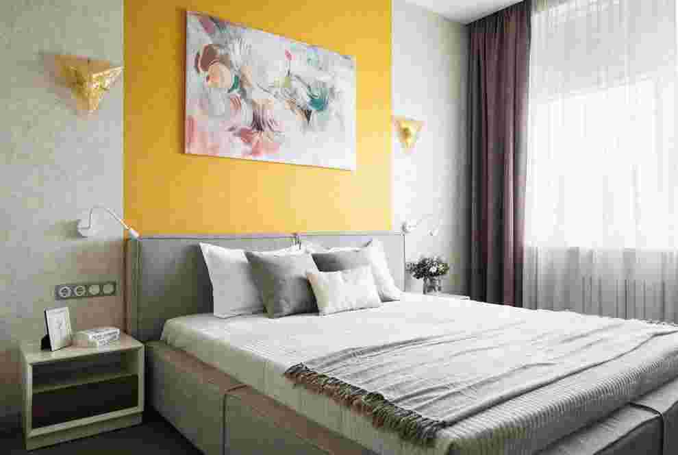 Очень важно чтобы выбранный цвет присутствовал лишь на одной поверхности. Это может быть акцентная стена, мебельные фасады или ковер на полу