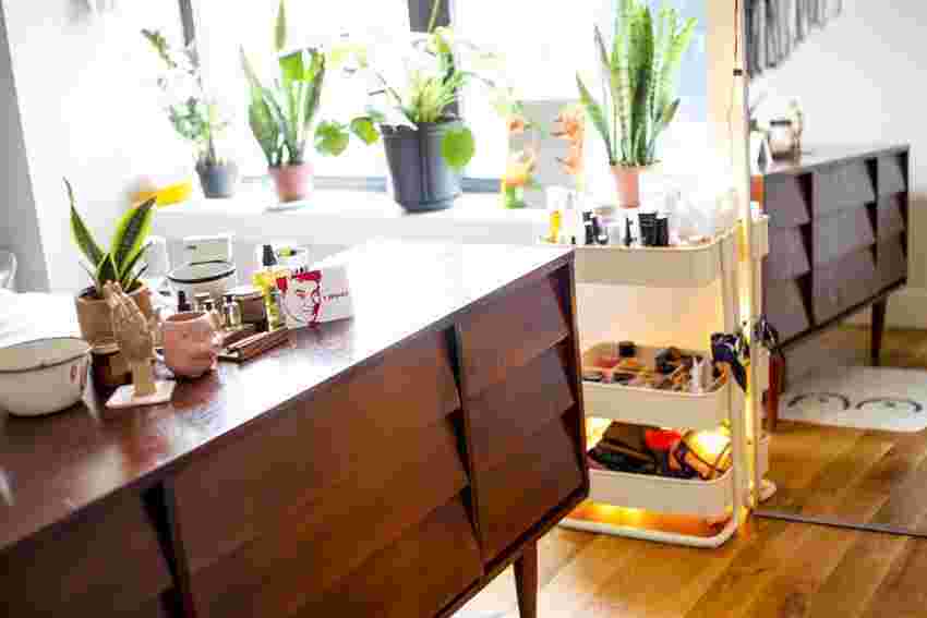 Дополнительно также установите металлические торшеры, лампочки Эдисона, оригинальные настольные лампы.