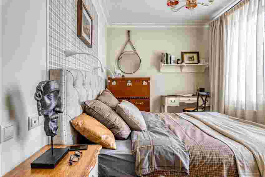 На мелочи внимание он обращает редко, а потому и лишнего в его спальне практически никогда нет. Та малая часть аксессуаров, которые здесь могут появиться, расставлены нарочито небрежно, что вносит особый колорит в дизайн и подчеркивает его брутальность