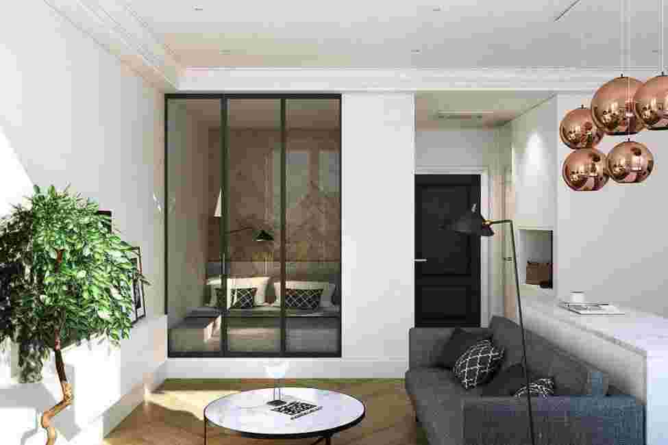 Стеклянные перегородки занимают немного места, пропускают свет, могут быть раздвижными, но хрупче и дороже других изделий из кирпича и гипсокартона.