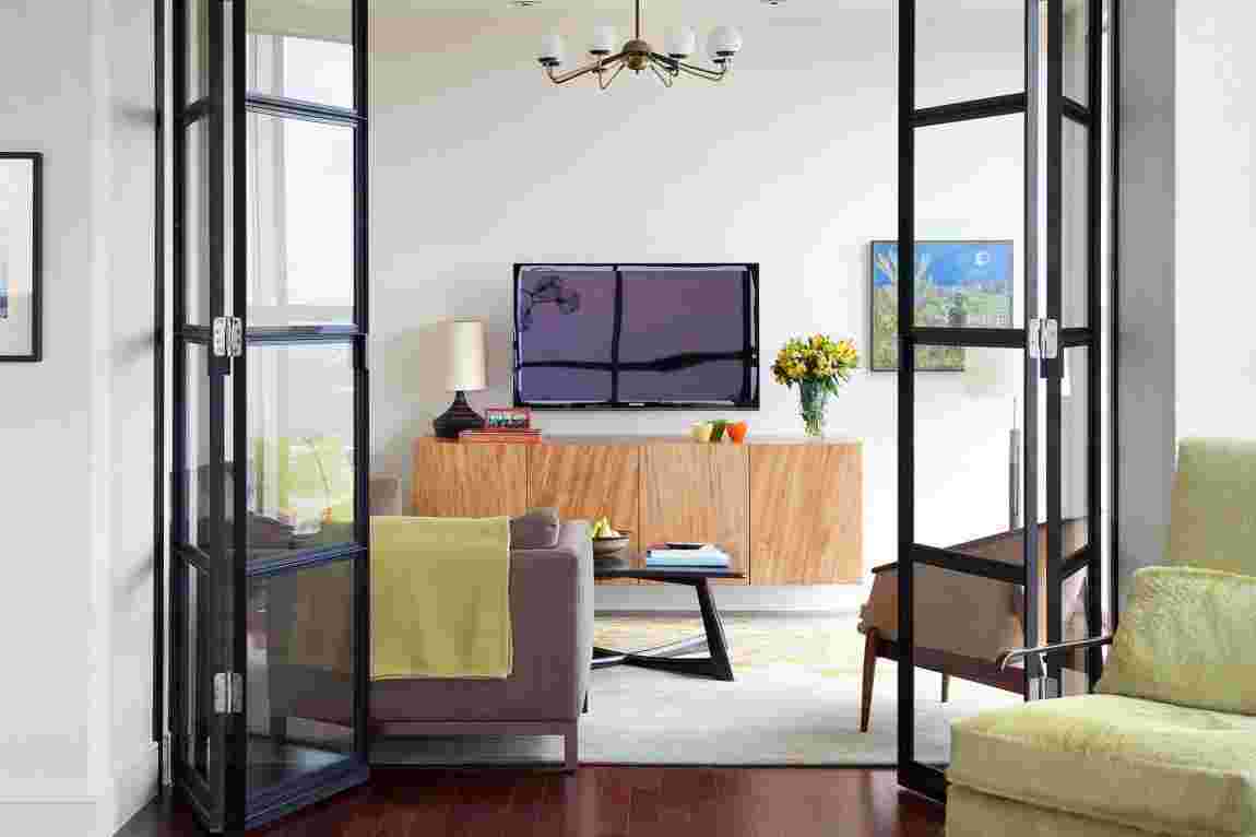Раздвижные стеклянные перегородки между кухней и гостиной