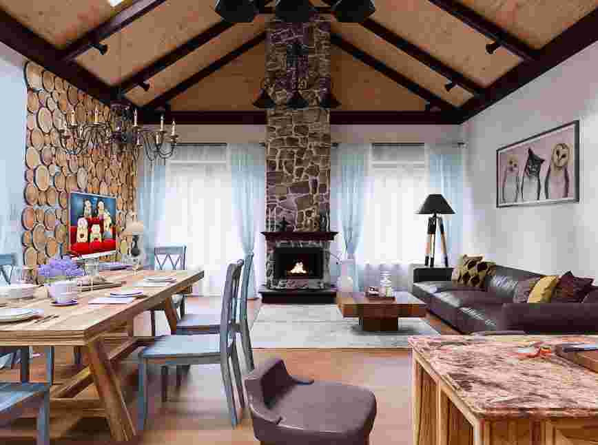 - много дерева и камня в оформлении.