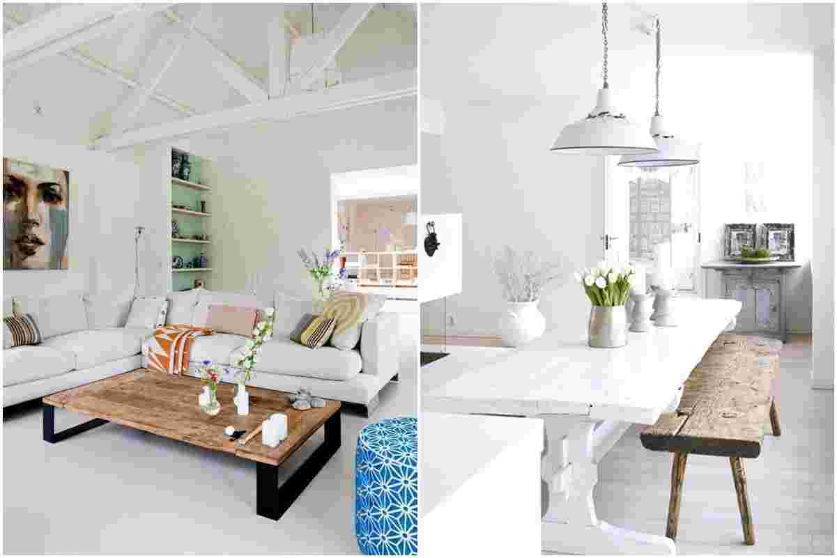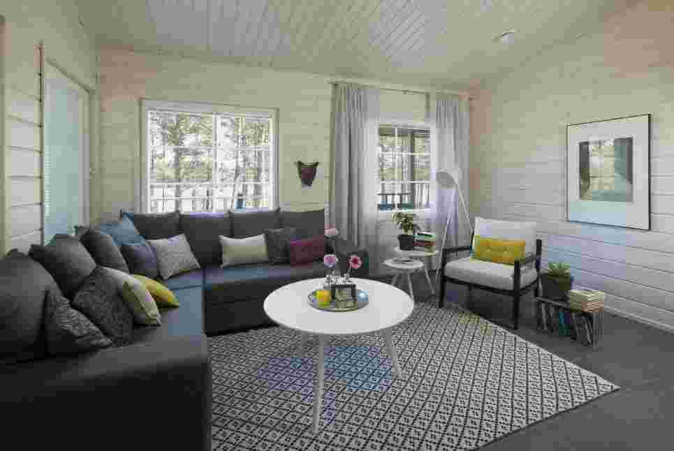 Хотя Скандинавия связана с холодом, интерьеры, оформленные в этом северном стиле комфортные. Они являются своего рода противостоянием от недостатка солнца и прохлады снаружи, поэтому являются яркими и очень уютными. Холодные белые стены и мебель согревают деревянные элементы, многочисленные ткани (подушки, покрывала, ковры) и капли яркого цвета, которые появляются в украшениях. Скандинавские интерьеры для загородных домов любят за удобство и функциональность. Они характеризуются: